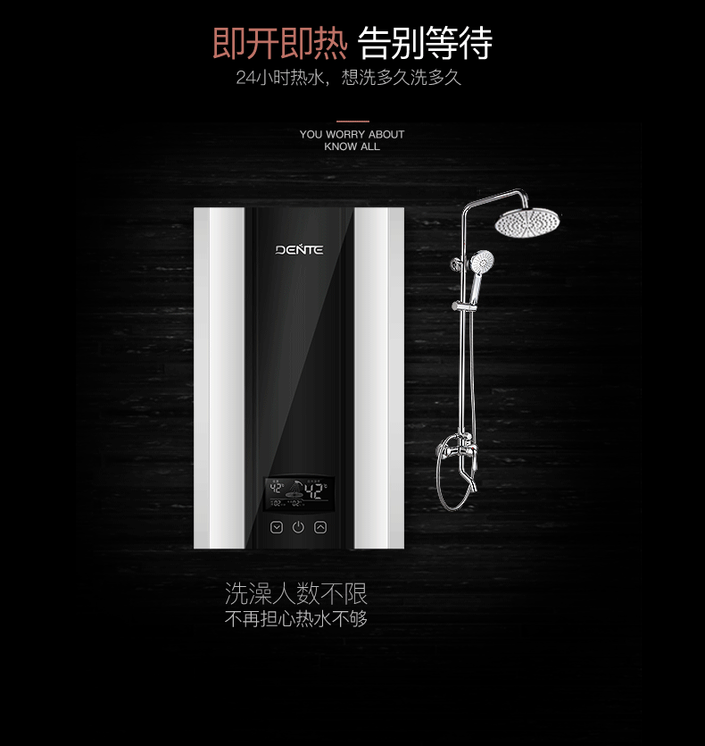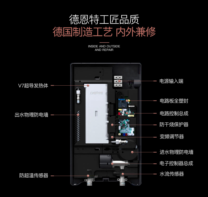 德恩特DTR-V7HD85即開即熱3秒速熱 變頻恒溫洗澡淋浴