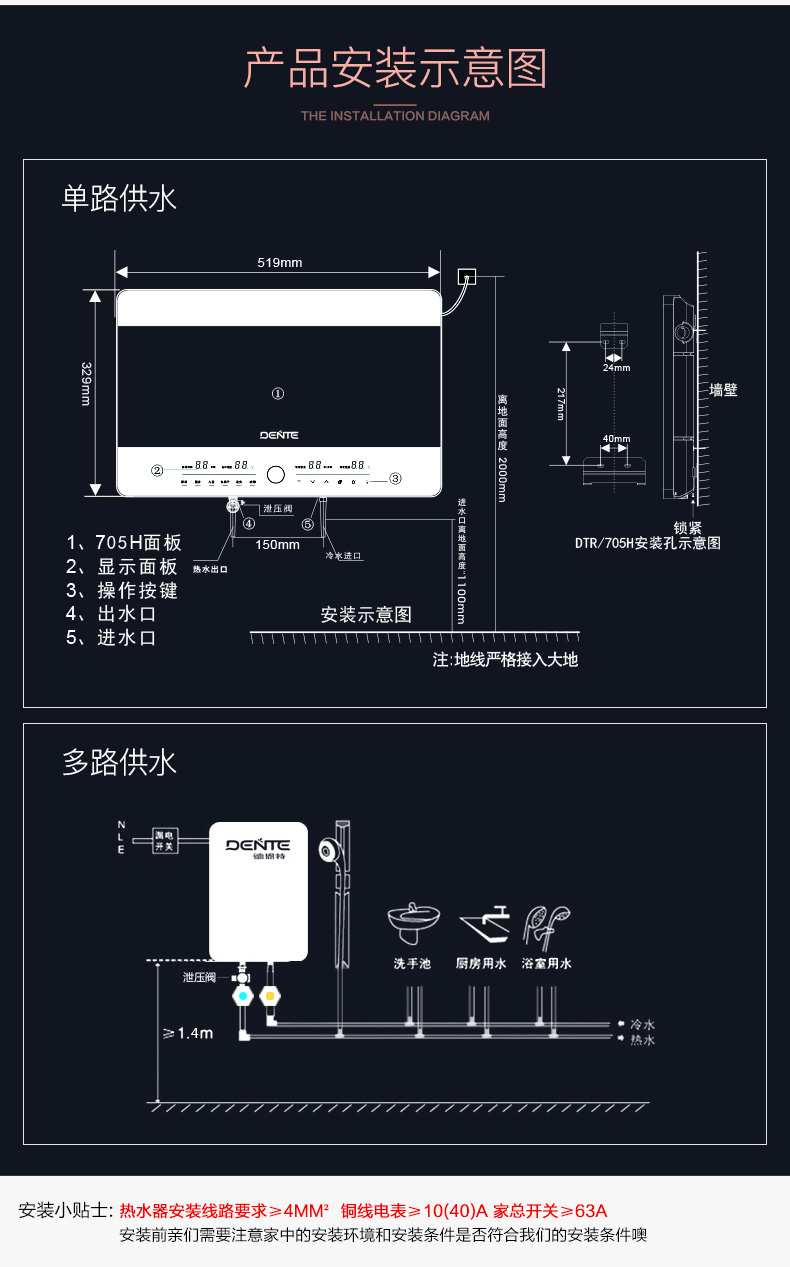 德恩特DTR/3XH 三相電動力 暢爽淋浴水電分離